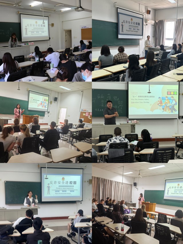 各班级积极响应,围绕消防安全、交通安全、食品安全、防溺水、防欺凌、防诈骗等多个安全维度,组织召开“五一假期安全教育与防诈警示”主题班会,全面提升留学生的安全防范意识和能力。