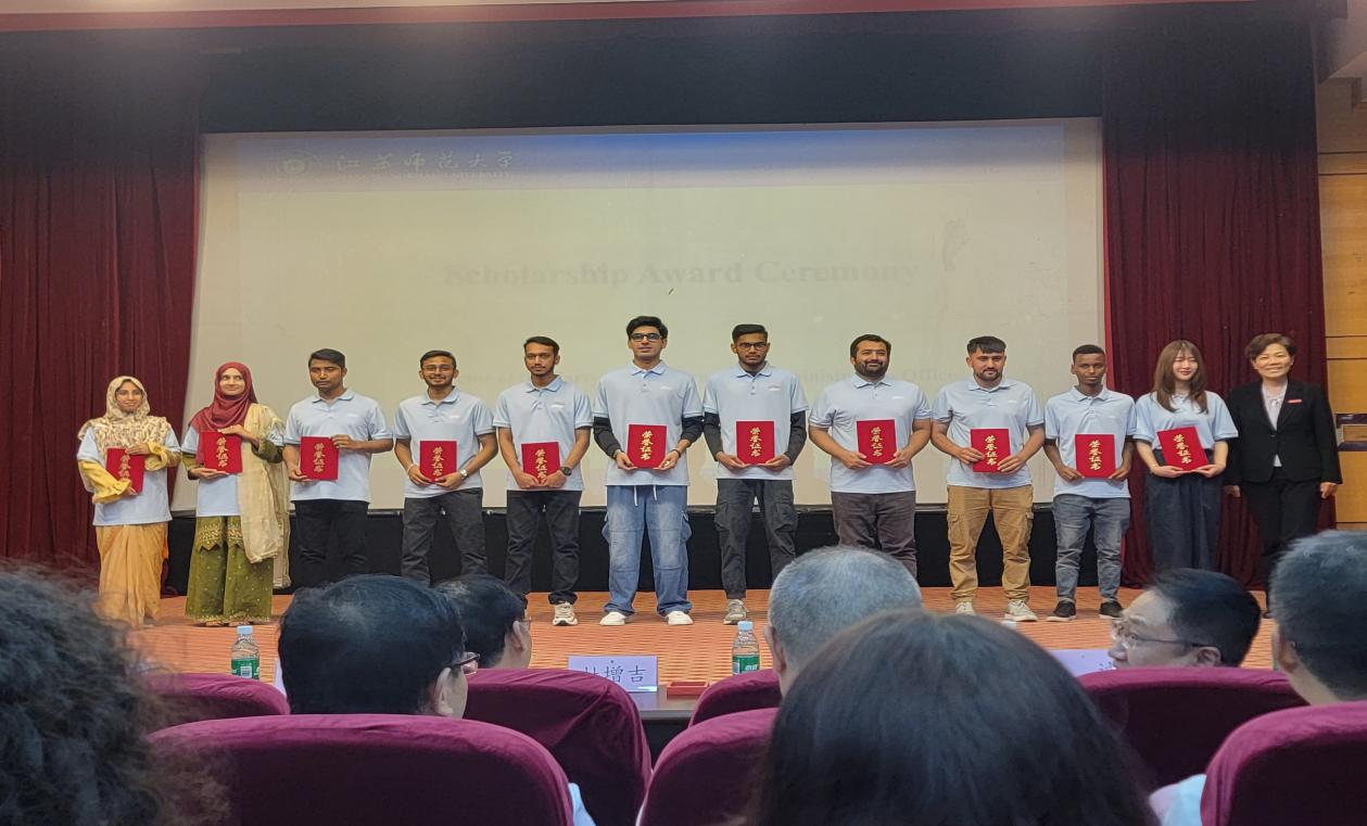 校党政办公室主任赵玉苏为中国政府奖学金学生代表颁发荣誉证书。