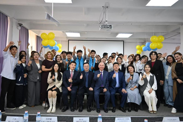 阿拉木图市教育局代表Abishayev Yerik、中国驻阿拉木图总领馆领事王磊、江苏师范大学国际学院预科中心主任甄宇彤、国际哈中语言学院校长塔勒哈特等嘉宾共同出席仪式。中心将聚焦“语言关、考试关、文化关”三关并进,助力更多哈萨克斯坦优秀青年以优异成绩走进中国校园。