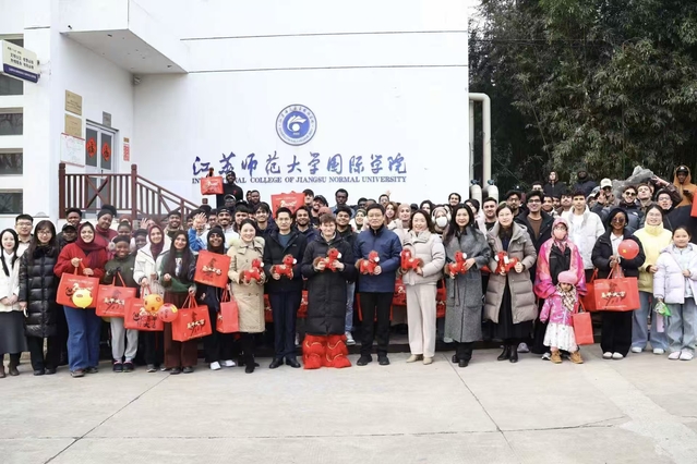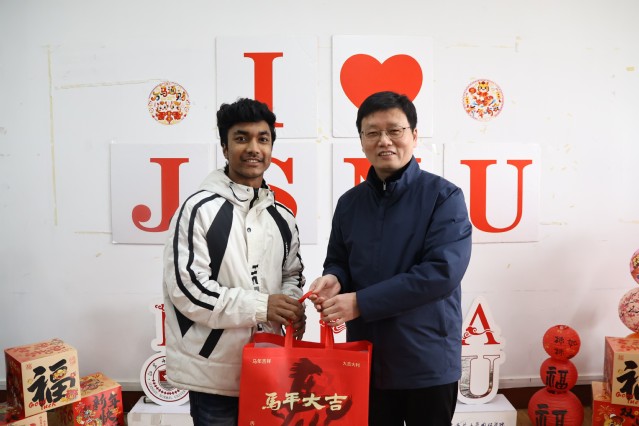 “同学们在体验中华文化魅力的同时,更用实际行动诠释了‘龙马精神’。”商校长在慰问致辞中表示,希望留学生们在新的一年里,以“奋蹄前行”的劲头深耕学业,以“马到成功”的信念讲好中国故事,当好中外文明交流的使者。他特别叮嘱同学们注意防寒保暖,学校将全力保障留学生的学习生活需求。随后,商校长和处(院)领导为留学生送上新春礼包,这份“苏师温度”让异乡学子真切感受到家的温暖。