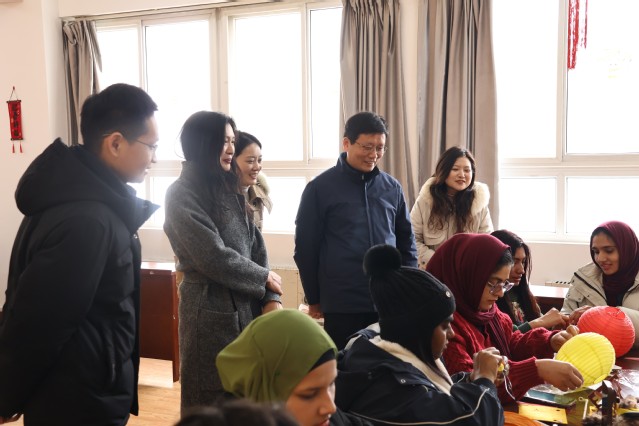 2月10日,正值中国传统“小年”,校党委常委、副校长商亮在国际合作交流处(国际学院)领导班子陪同下,与来自30余个国家的200余名留校留学生欢聚一堂,共迎农历马年新春,传递学校的关怀与温暖。