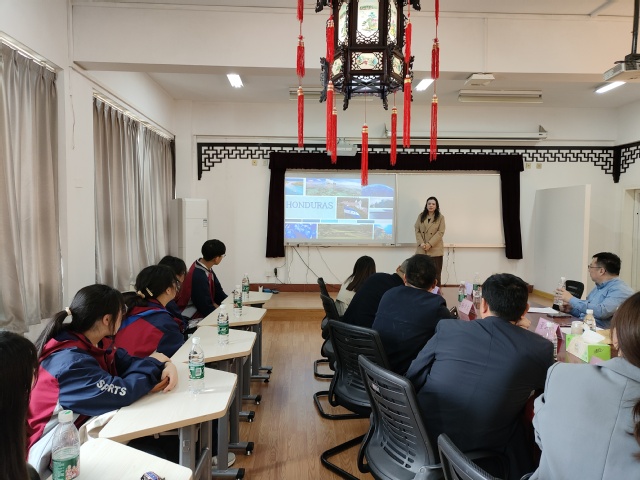 活动伊始,国际学院院长侯铁建热情地向来访师生介绍了国际学院的人才培养概况。他详细介绍了国际学院的职责定位、留学生规模和来源国情况、专业设置以及国际化办学成果,让附属中学的师生们对学校来华留学培养有了更加全面而深入的了解。