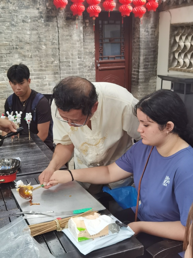 紧接着,营员们前往户部山和戏马台。在戏马台,他们领略了这一古迹的历史和文化背景,欣赏了其独特的建筑风格和壮丽景观。而在户部山,他们深入体验了传统民俗文化,亲手制作捏面人和糖画。专业的民俗艺人向营员们展示了精湛的技艺,大家纷纷动手实践,创作出属于自己的艺术作品。这些活动不仅让营员们感受到了中国民间艺术的魅力,还锻炼了他们的动手能力和创意。