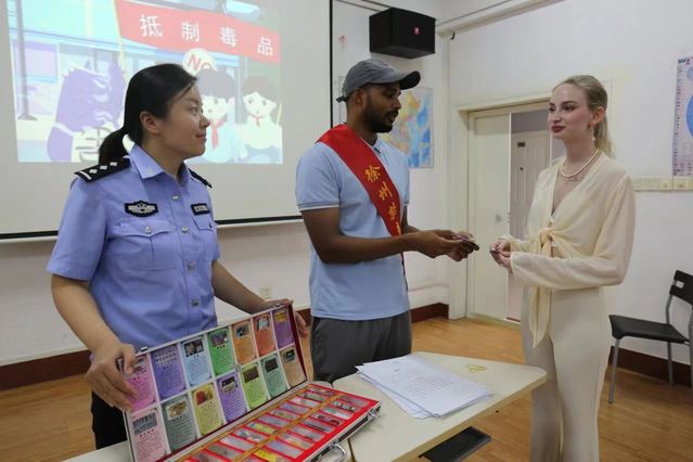 王妍警官以“防范青少年滥用涉麻精药品等成瘾性物质”为主题开展了禁毒宣讲活动。王警官通过精心制作的专题课件,结合生动的案例,科普涉麻精药品等成瘾性物质滥用危害知识,重点宣传防范药物滥用方法,倡导国际学生筑牢禁毒思想防线。在场国际学生积极参与互动,纷纷表示将成为禁毒宣传的使者,在校园内外传播正能量,共同守护“无毒”青春。会上,我校多米尼克籍MCCLEAN, CHARLTON, ALISTAIR等学生被聘为徐州市禁毒志愿者,并授予证书。